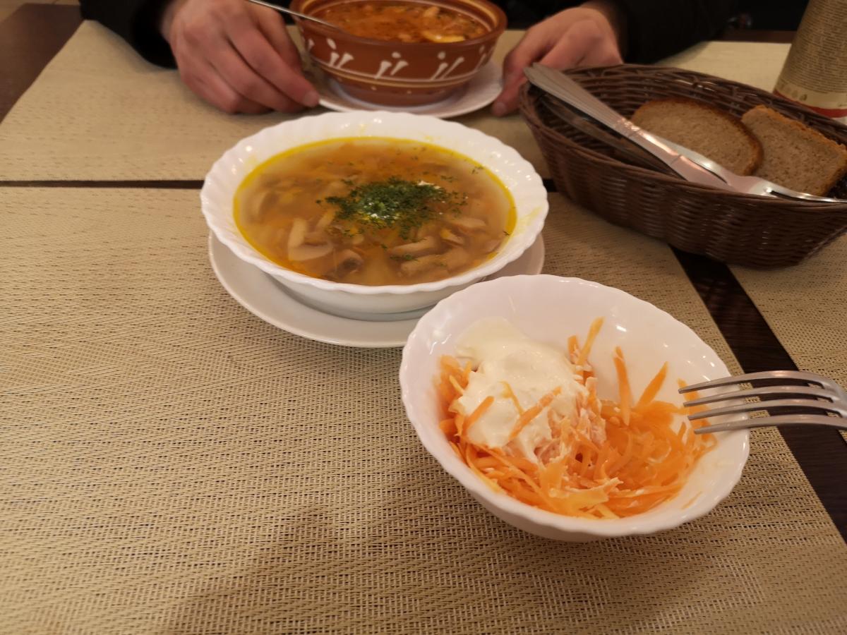 Брал салат из морковки, грибной суп и эскалоп. Все понравилось.