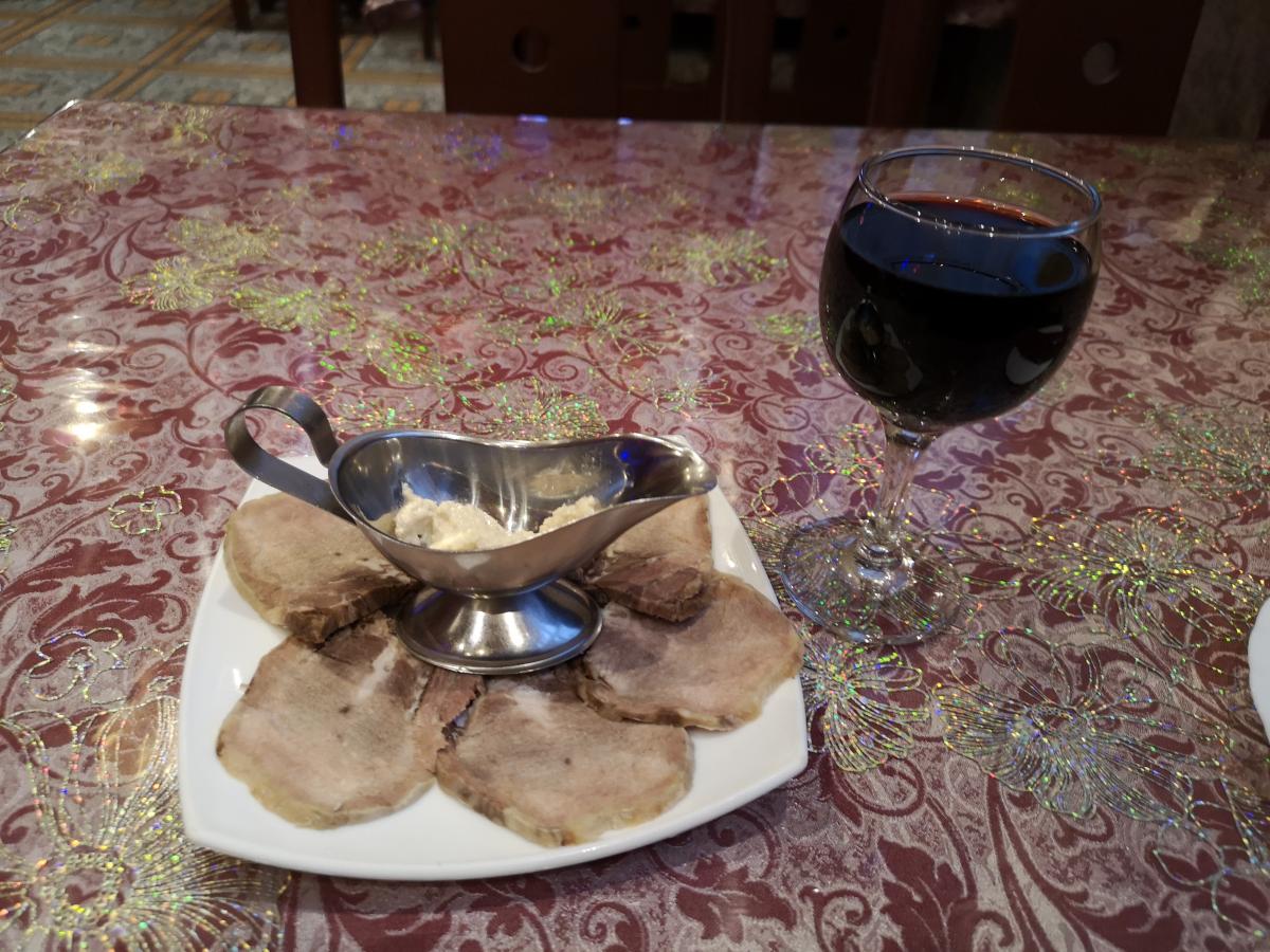 Взял телячий язык, молочную уху и свинину по-милански. Из азербайджанского брал только вино.
