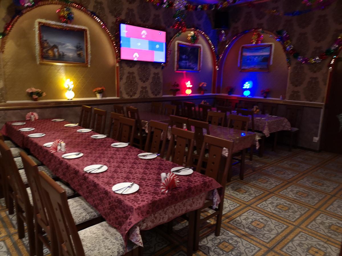 Два зала,один из которых банкетный,второй обычный-вроде 6 или 8 столов на четверых.Есть отдельная кабинка,где и приземлился.