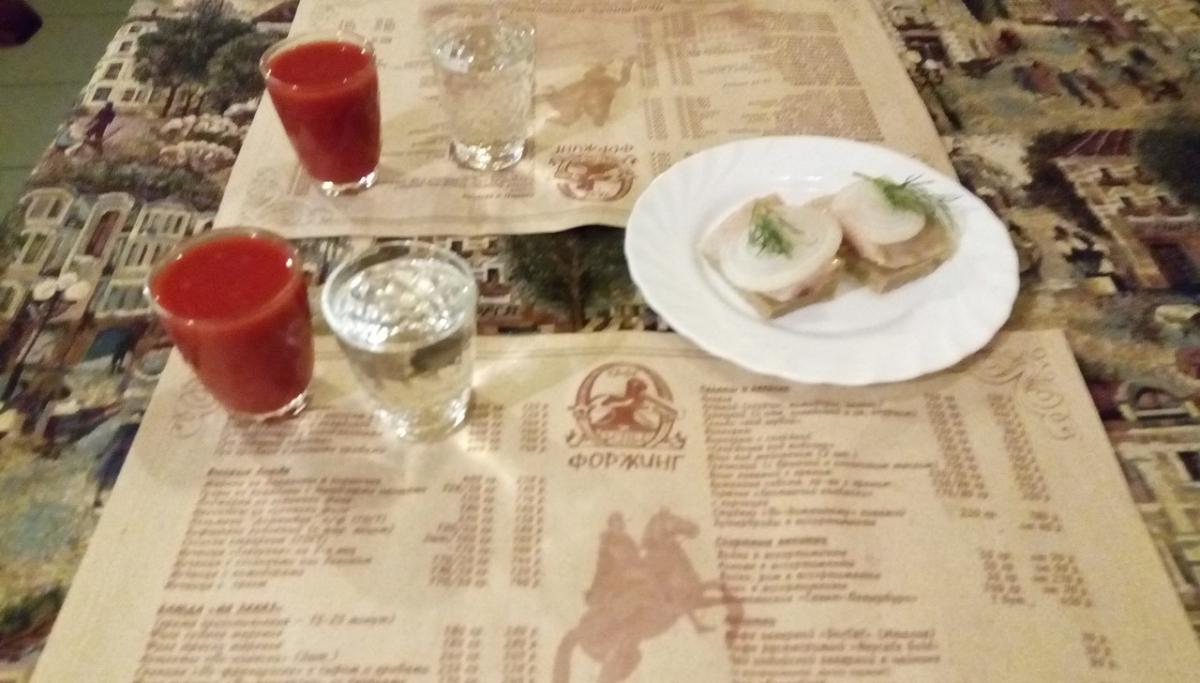 Цены на водку, за 100 г, от 60 до 150. Пиво вполне качественное, употреблял в прошлом году. В этот раз 50 г + 100 томатного - 60 (40+20).