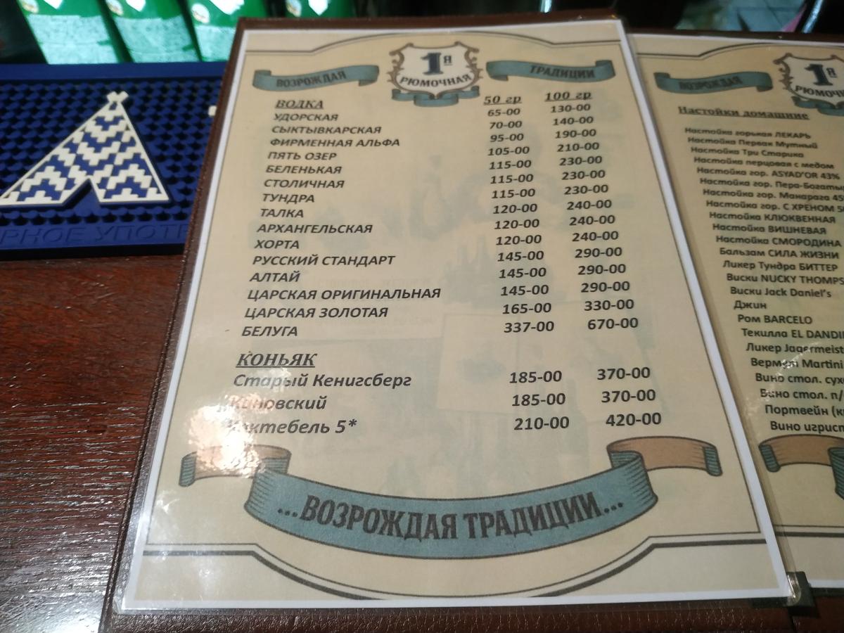 Есть водка "Тяпница" за 120р 100гр. Её брать нельзя, это залупа.В ней 38 оборотов. Пять озёр за 140р 100гр и, нет, не сок, а шикарный малосольный огурчик за 30р. Огурцы у них великолепные, только надо просить, чтобы захватили из миски самый жирный. Огурцы хороши!