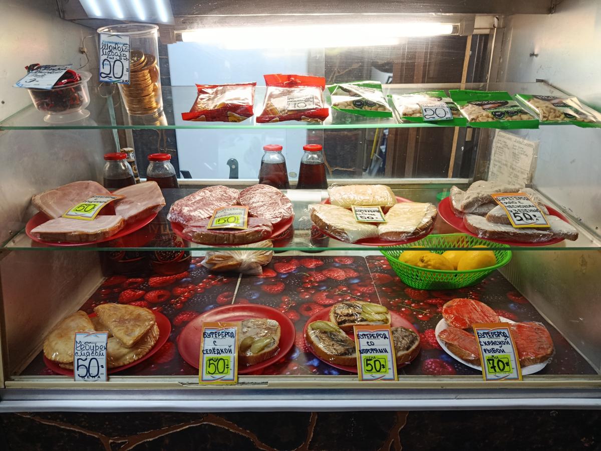 - Бутерброд со шпротами = 50р (как и все бутеры, кроме как с красной рыбой за 70р)