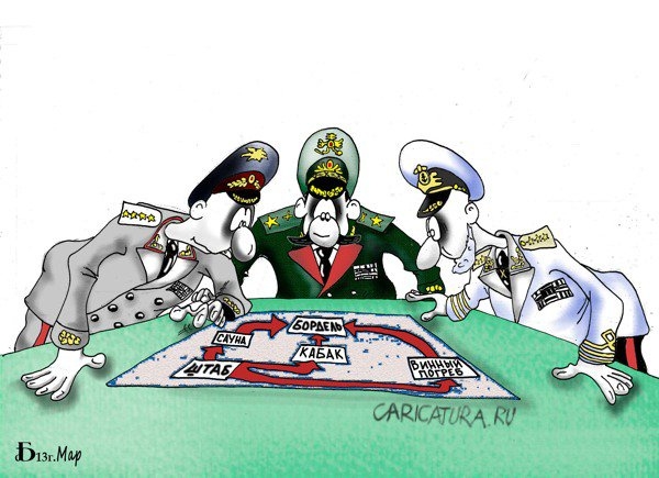 На учениях по гражданской обороне Борода, Кэп и Серёга333 разрабатывают план действий.