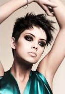 Есть татуировки. Прическа в стадии совершенствования, не доделана до конца. Будет выглядеть вот так, очень похожа, только выглядит моложе чем девушка на фото.